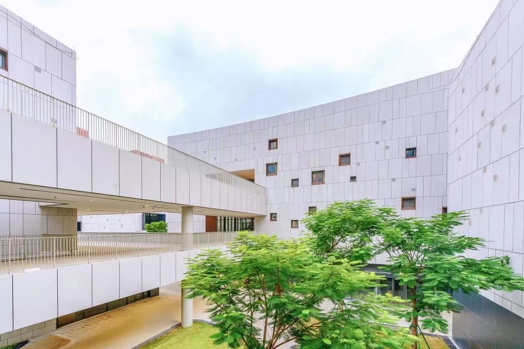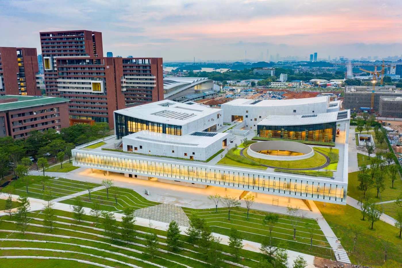 華南理工大學廣州國際校區(qū)項目是國家、省級重點項目,國際校區(qū)圖書館工程總建筑面積為52200平方米,分為地下一層地上五層,為現(xiàn)澆鋼筋混凝土框架、屋面鋼結(jié)構(gòu),采用290的外傾斜造型、砼創(chuàng)UHPC清水混凝土掛板、超高超大跨度、“Z”字型屋架鋼梁等高難度結(jié)構(gòu)形式。