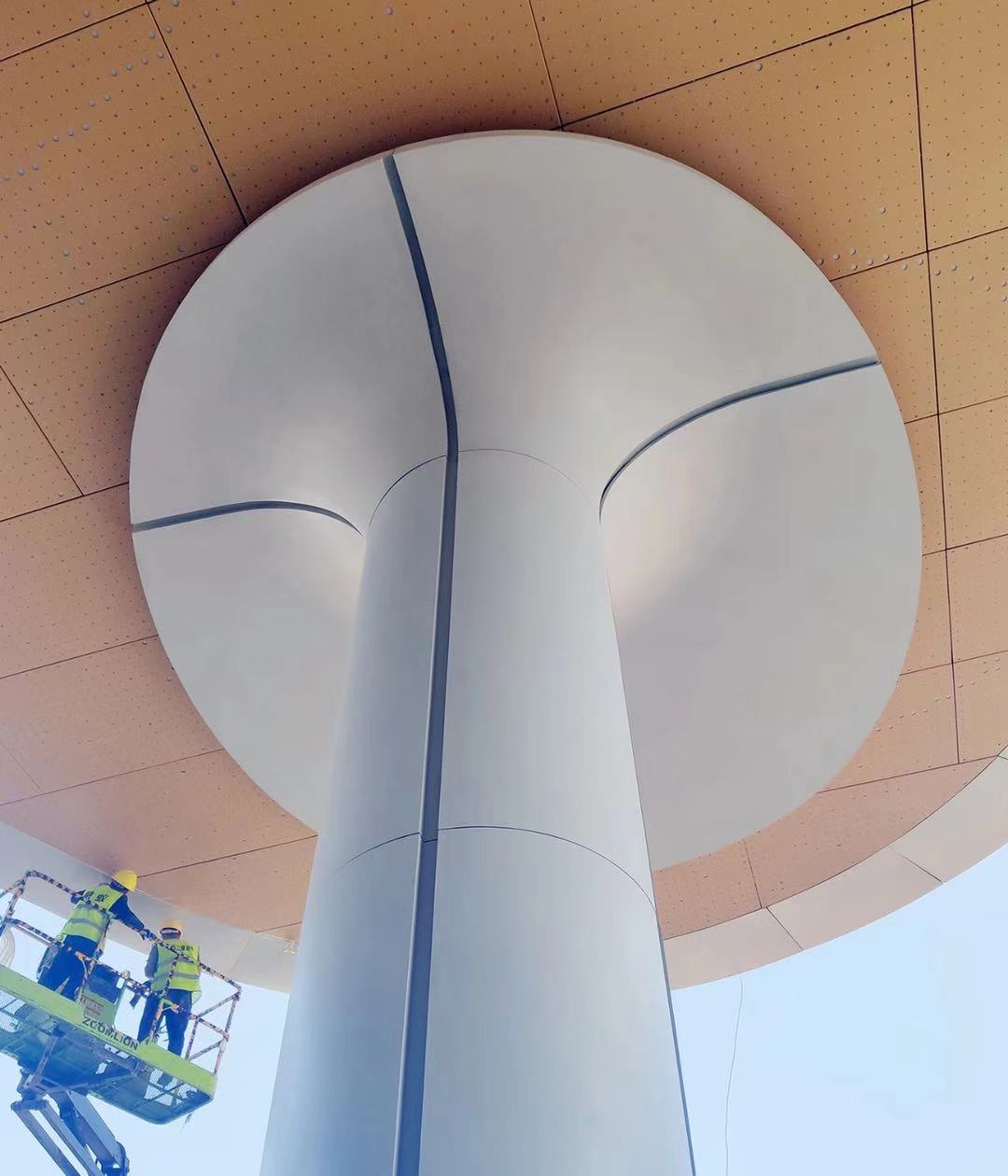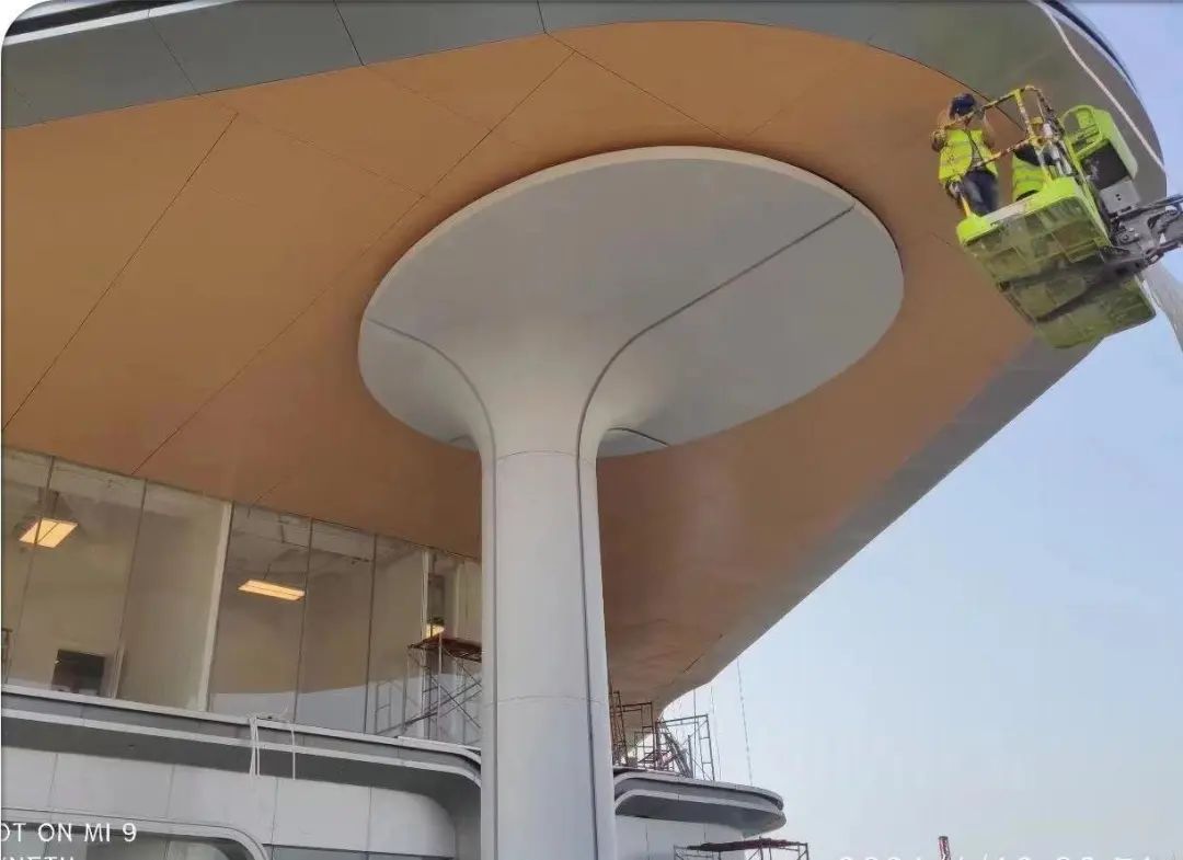得益于UHPC優(yōu)異的材料屬性,能制作大規(guī)格及大異型的預(yù)制構(gòu)件,為建筑幕墻裝飾行業(yè)帶來了更多的可行性。完工后的柱體造型流暢,美觀獨(dú)特,現(xiàn)代輕奢。窄橫縫、寬豎縫的建筑成品更給人視覺上”無橫縫“的效果。UHPC表面質(zhì)地細(xì)膩,讓其融入水景,與水面景觀相輔相成,互相促進(jìn)。