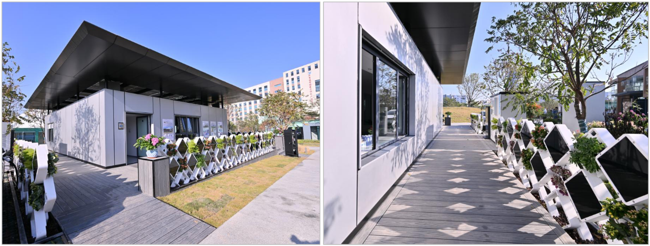 廣州朋悅建材設(shè)計制作的垂直綠墻模塊/垂直綠墻模塊面板,為白色清水UHPC裝飾結(jié)構(gòu)一體化構(gòu)件,既有綠化和安裝太陽能電池板功能,也同時具備圍墻的維護(hù)功能,見圖37。