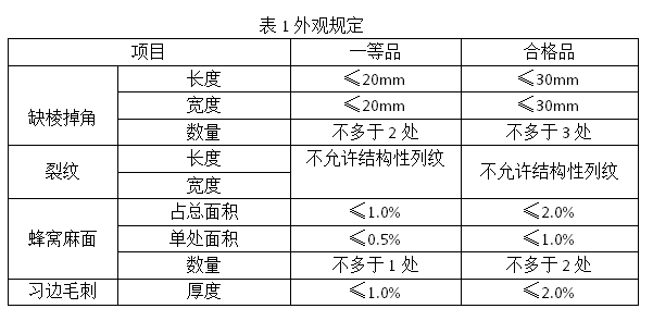 外觀質(zhì)量應(yīng)符合表1的規(guī)定