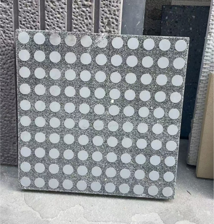 原理:將圖片處理后使用印刷設(shè)備印刷到 防水紙或膜上,其中印刷油墨中包含特殊的水泥緩凝劑,制成緩凝成像膜。再使用緩凝成像膜制作混凝土板,使得混凝土板上圖案區(qū)域骨料露出,與無圖案部分的水泥基色形成對(duì)比,產(chǎn)生圖案效果。圖案由圖案部分露出的骨料與無圖案部分正常水泥石的顏色色差對(duì)比形成。緩凝成像技術(shù)制成的圖像混凝土,圖案從任意角度觀察都清晰可見。